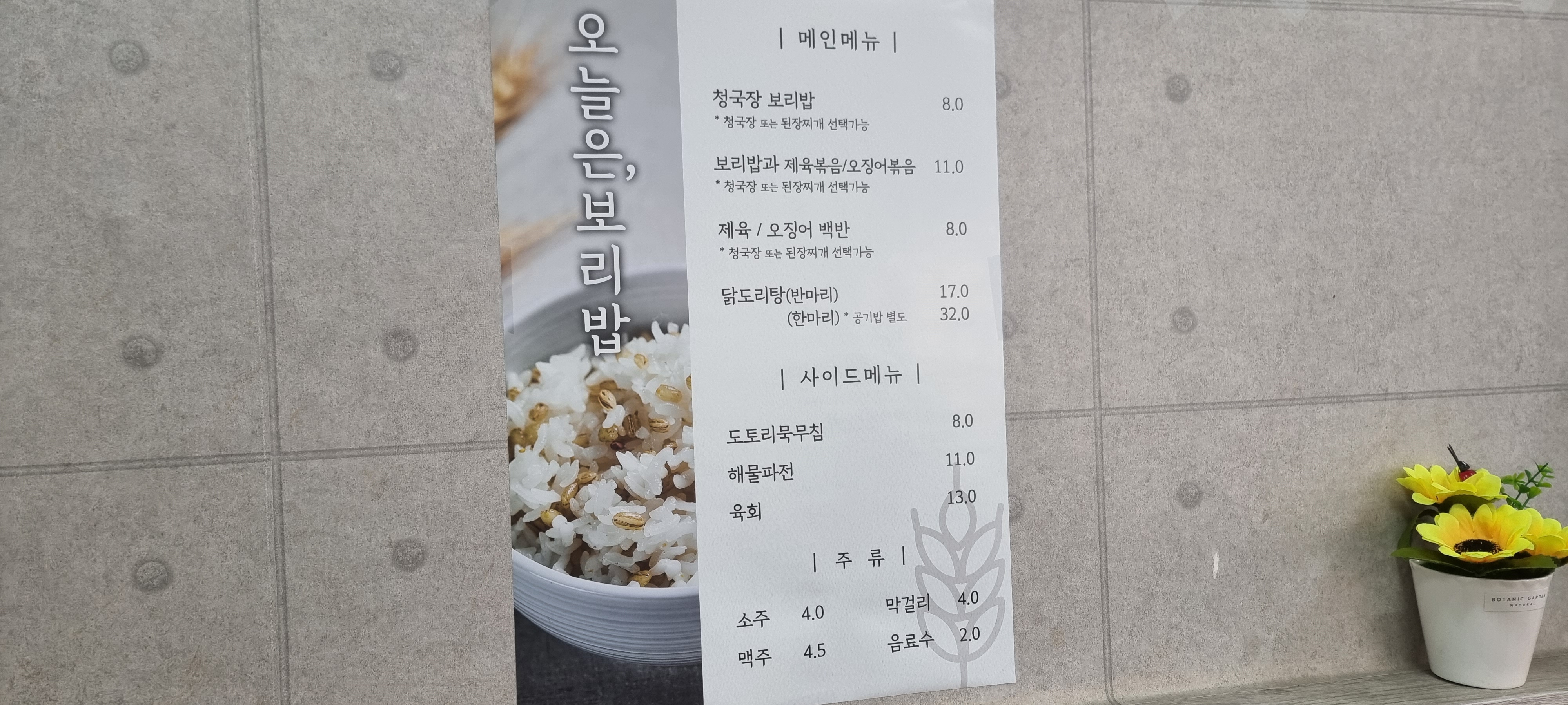 - 기본 청국장, 된장찌개, 제육, 오징어 볶음은 8천원