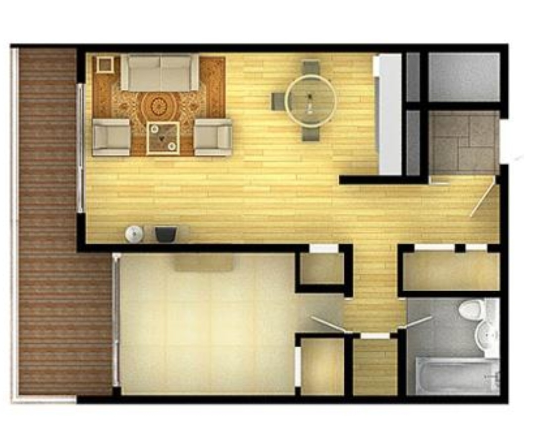 일단 방1, 거실1, 화장실1 이 있는 구조의 숙소에요.